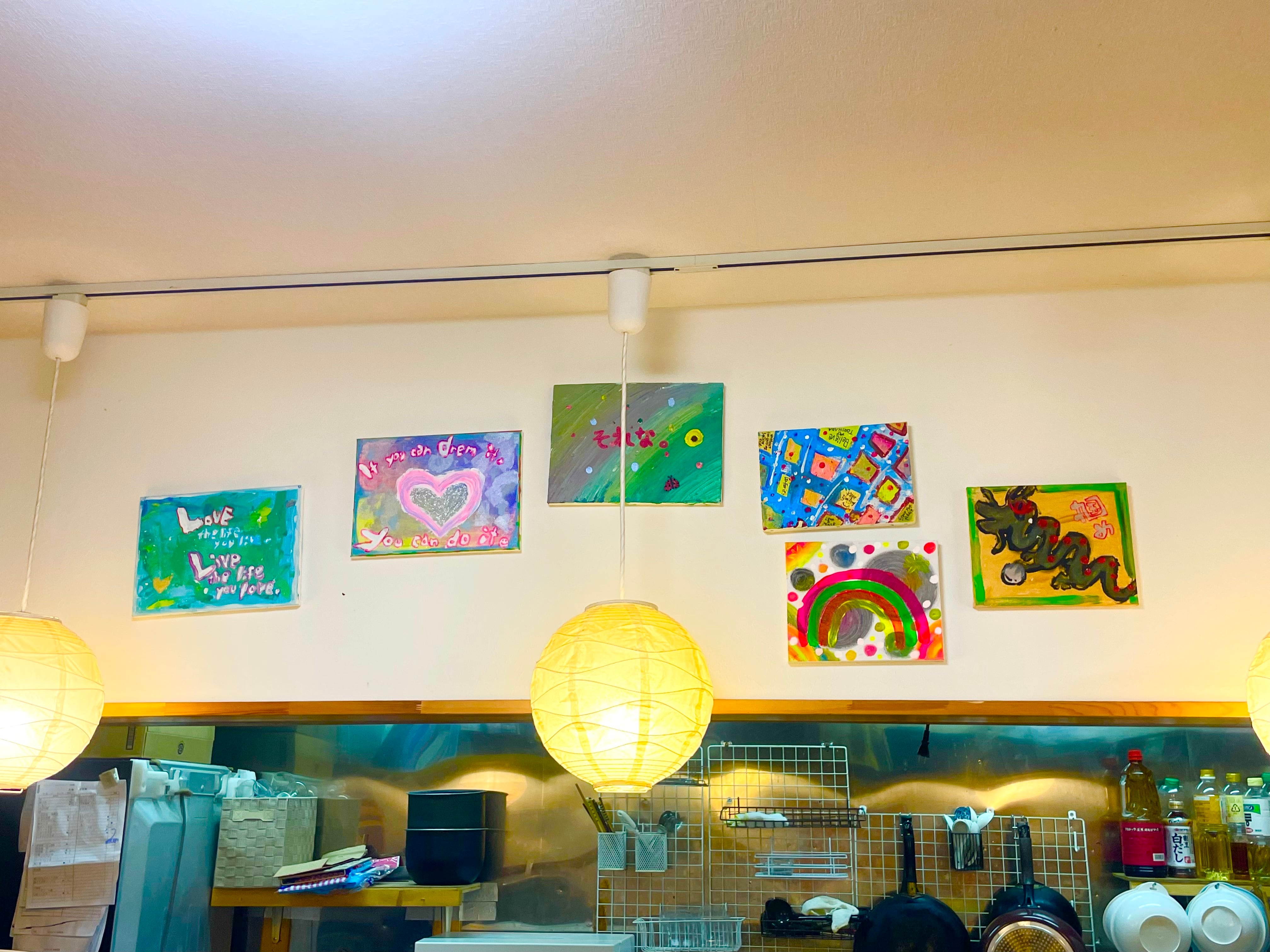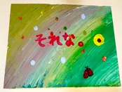 キャンパスにアクリル絵の具で描いてます。ロハロハkids&ママ2人と仲間達みんなで筆を入れて