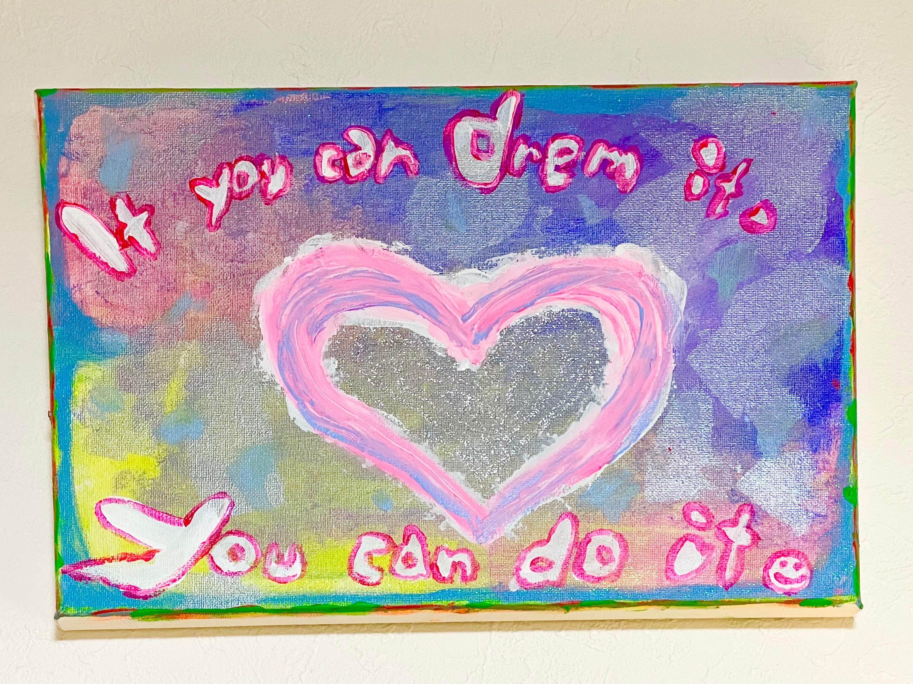 キャンパスにアクリル絵の具で描いてます。ロハロハkids&ママ2人と仲間達みんなで筆を入れて