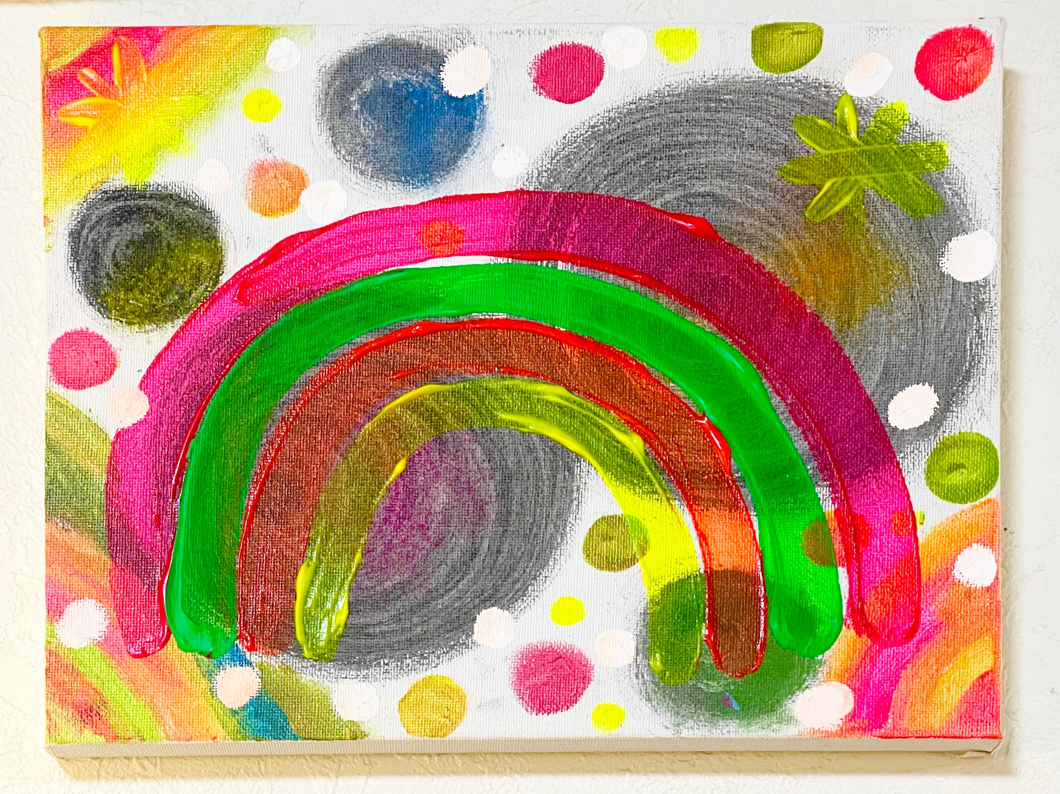 キャンパスにアクリル絵の具で描いてます。ロハロハkids&ママ2人と仲間達みんなで筆を入れて