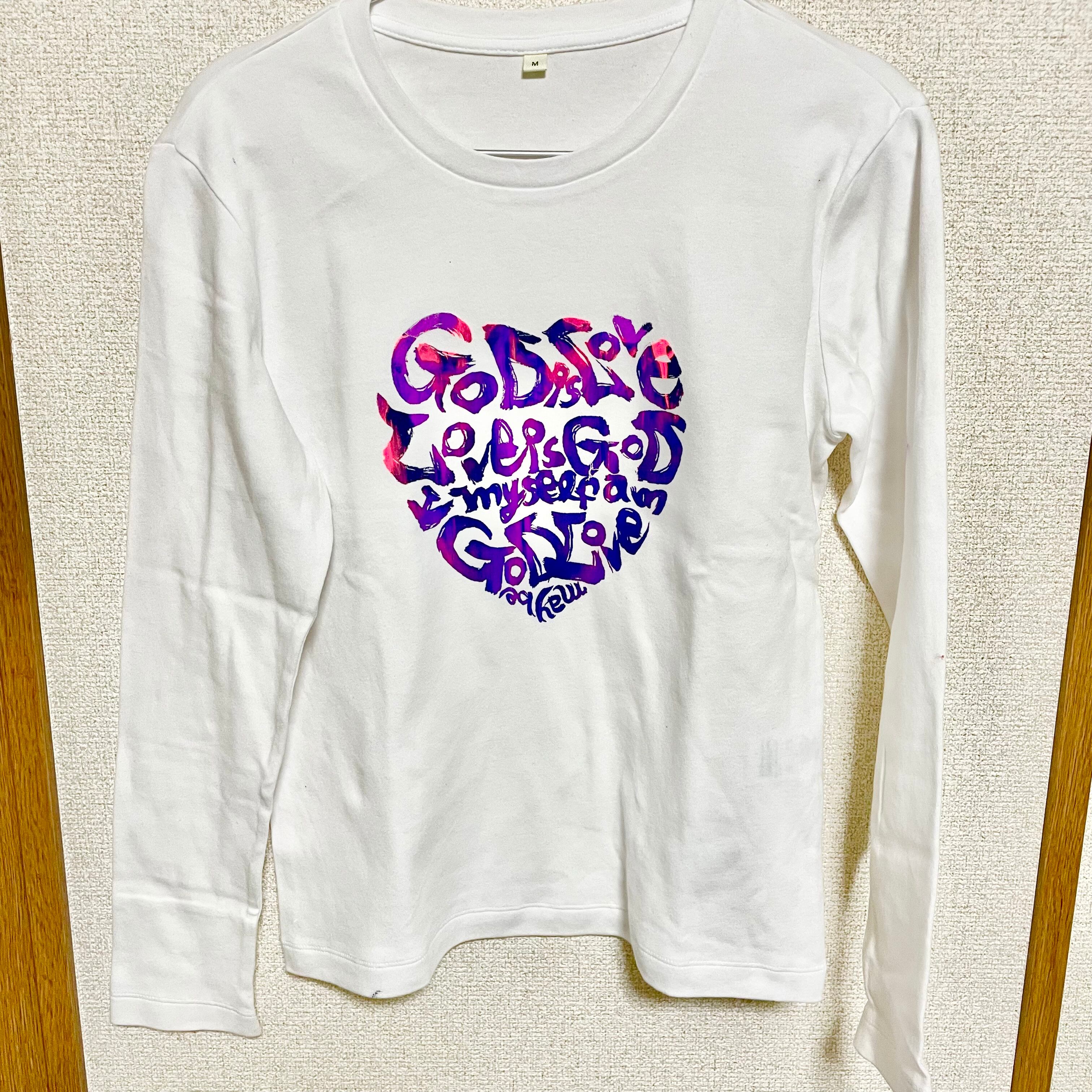 ハート枠の中に筆文字で書いたものがシルクスクリーンでプリントされています。