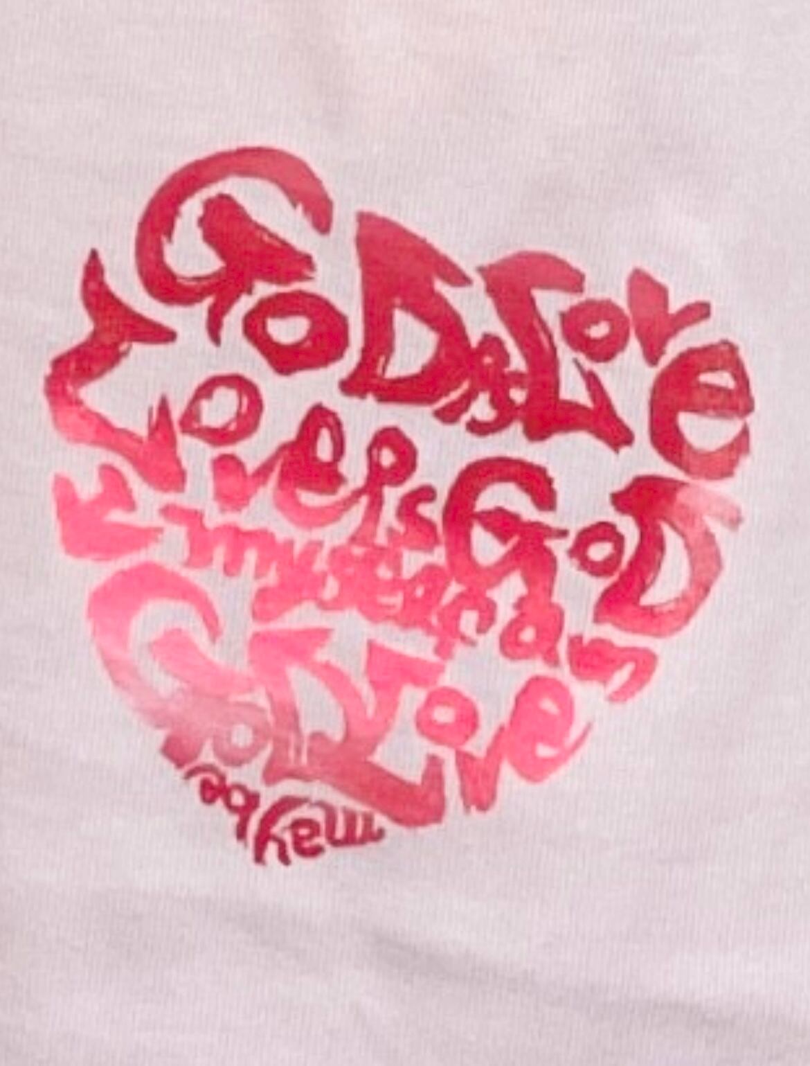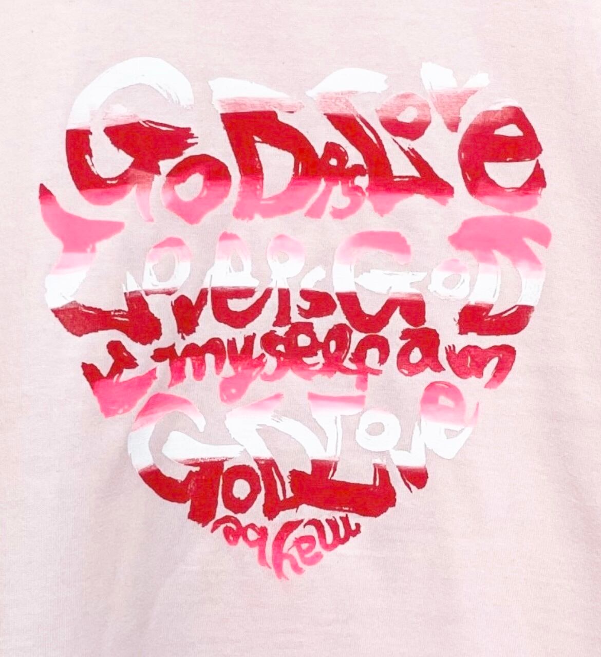 ハート枠の中に筆文字で書いたものがシルクスクリーンでプリントされています。